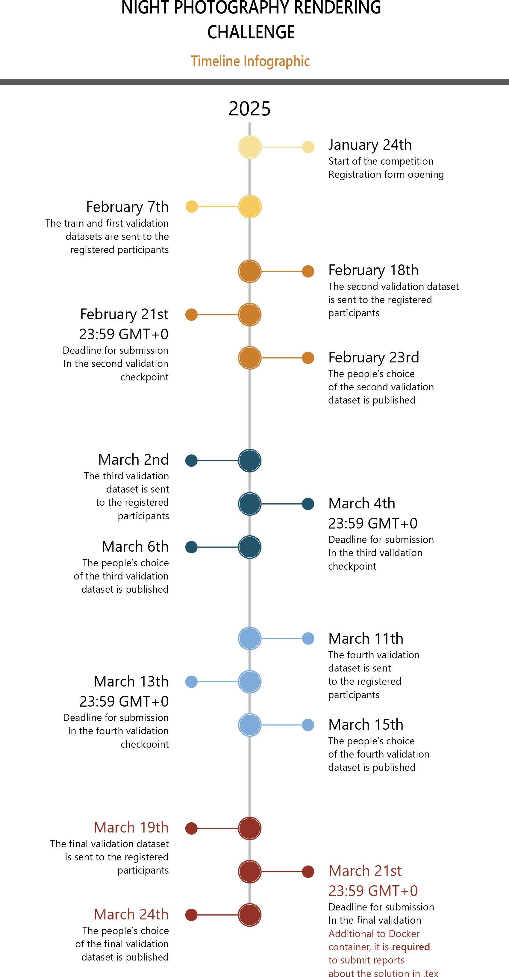 * Please note that the timeline can be slightly changed, so it is advised to check the challenge web page over time.